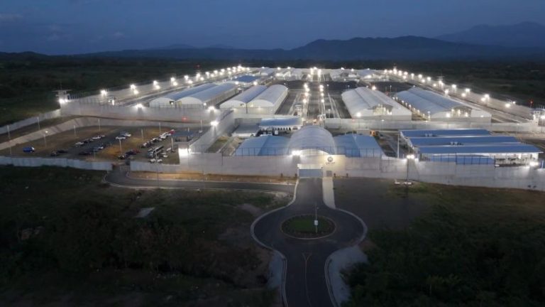 A thousand or more armed guards rotate duties at the prison, built in just seven months and opened in January 2023. The prison is also ringed by multiple electric fences and 19 watchtowers.